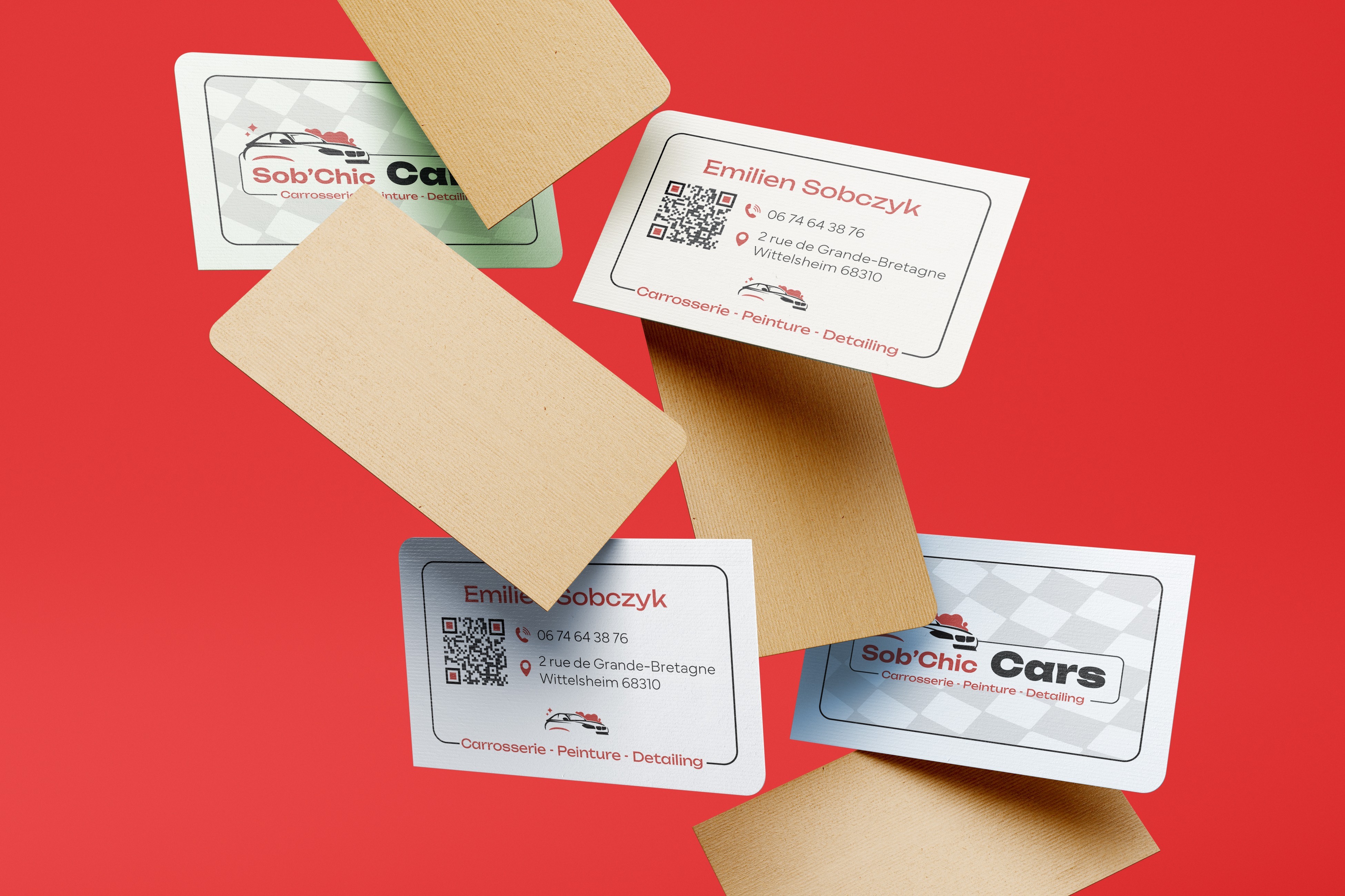 Le secteur de la carrosserie et du detailing automobile a ses codes. Souvent génériques, rarement mémorables. Un logo bleu ou rouge, une typographie industrielle, une carte de visite imprimée en 500 exemplaires sans grande conviction. Sob'Chic Cars voulait autre chose.