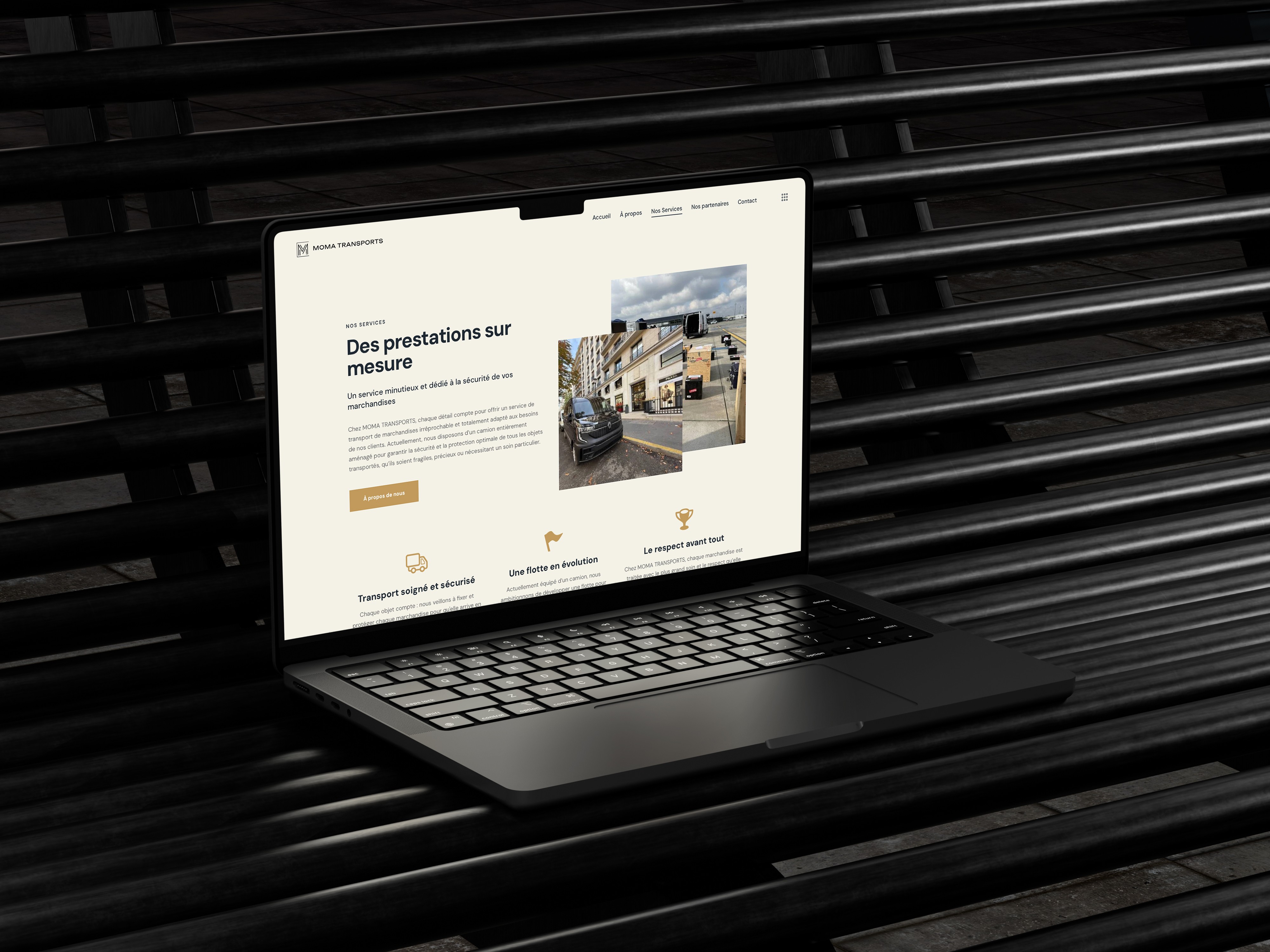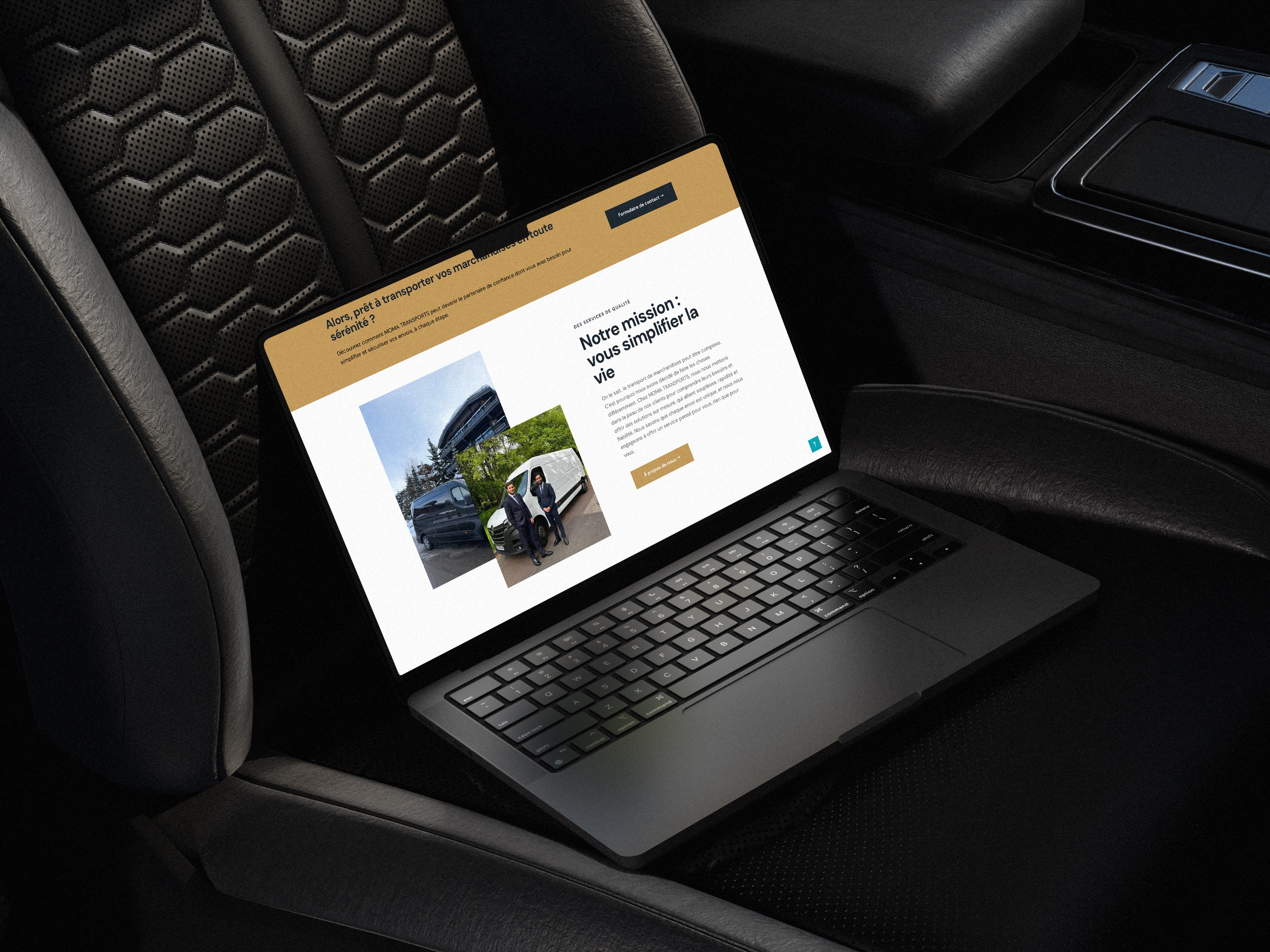 J'ai accompagné Moma Transports sur l'ensemble de cette construction. Le site WordPress a été pensé comme un outil de conversion avant tout — présenter l'activité clairement, mettre en avant les services, et faciliter au maximum la prise de contact. En parallèle, j'ai travaillé sur les variantes du logo pour couvrir l'ensemble des usages et supports, et mis en place une fiche Google My Business optimisée pour capter la clientèle locale au moment précis où elle cherche un prestataire.